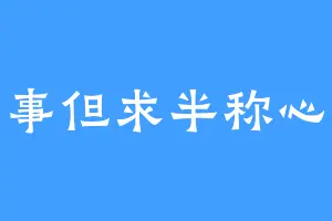 万事但求半称心啊